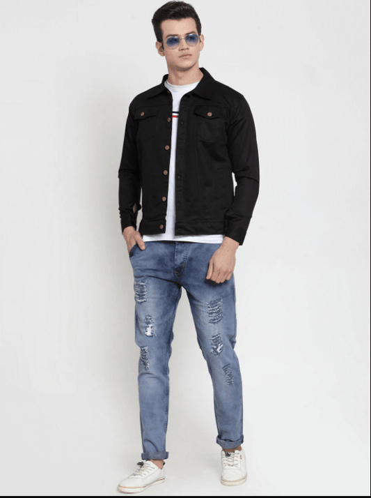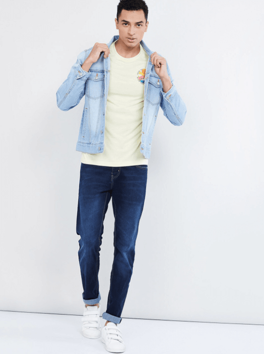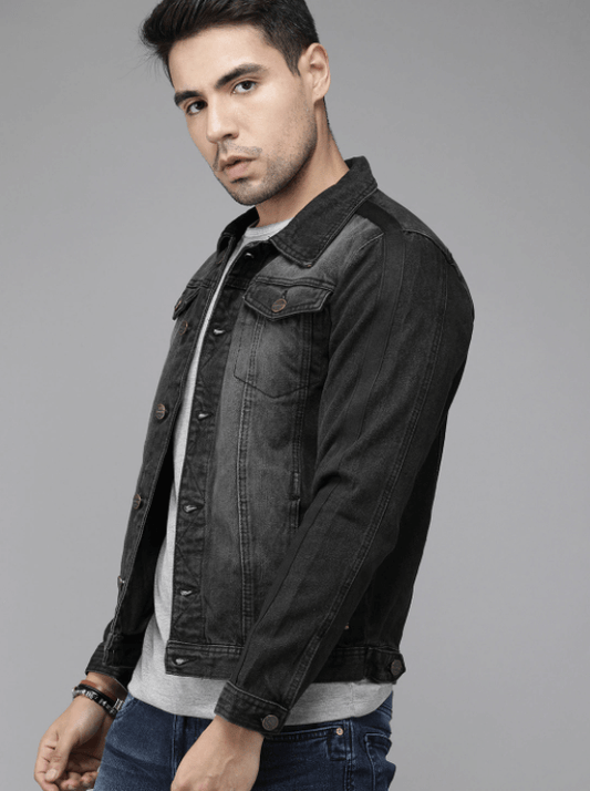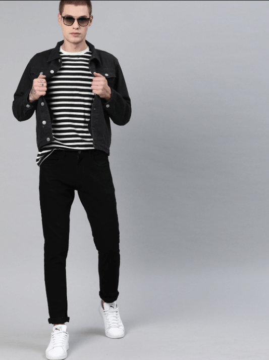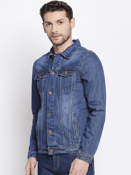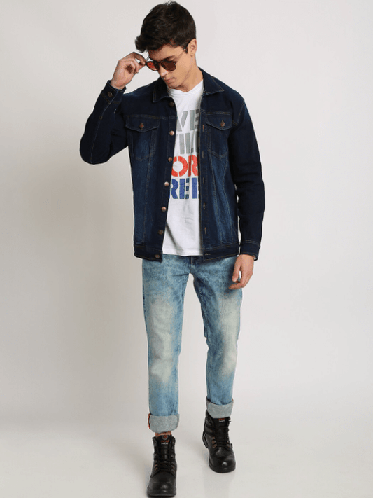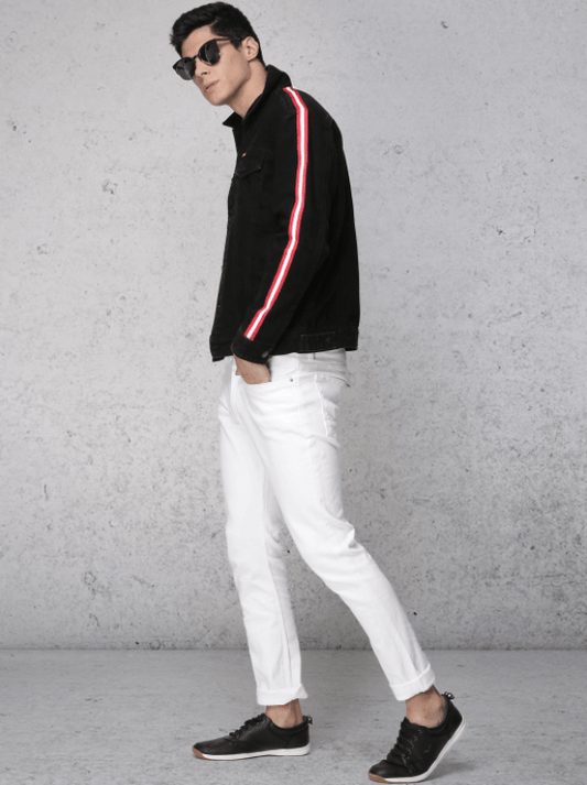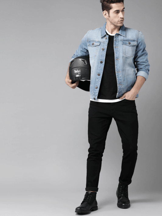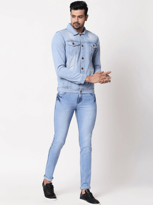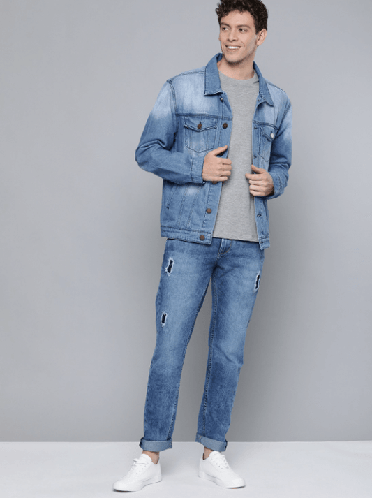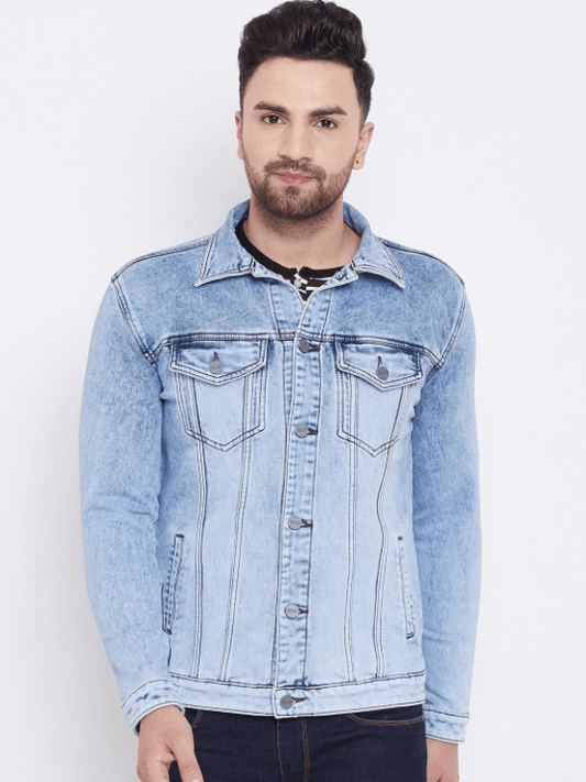 Mens Denim Jacket Light Blue Stripe Sleeves