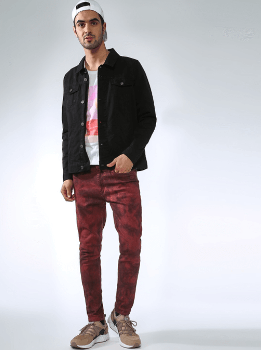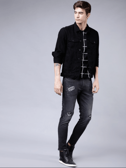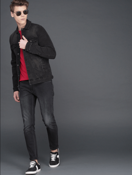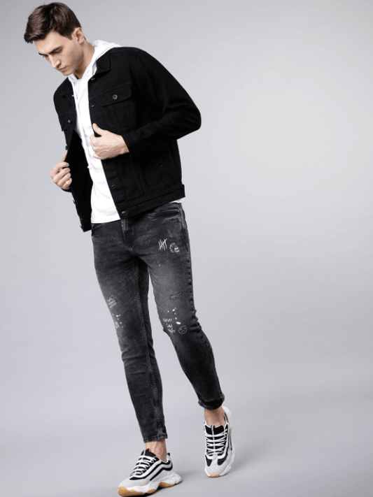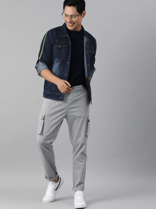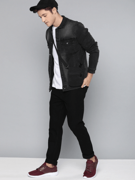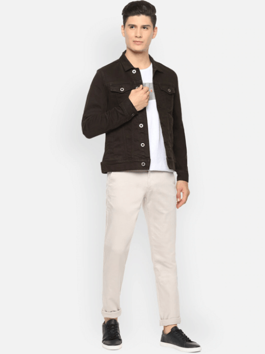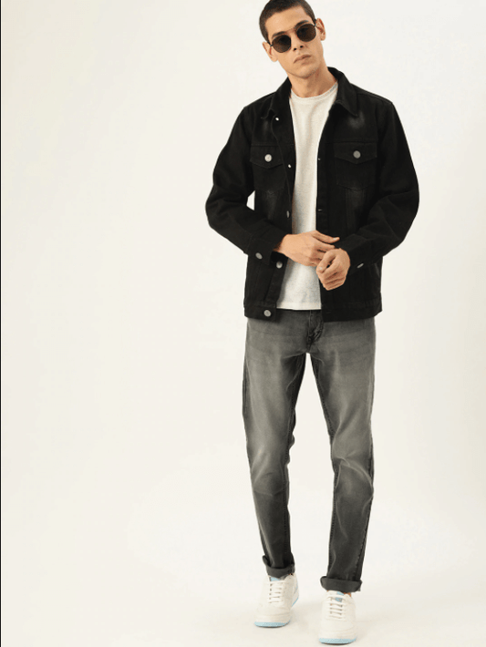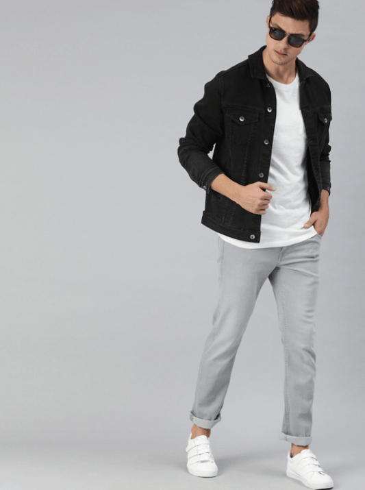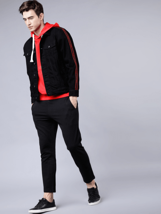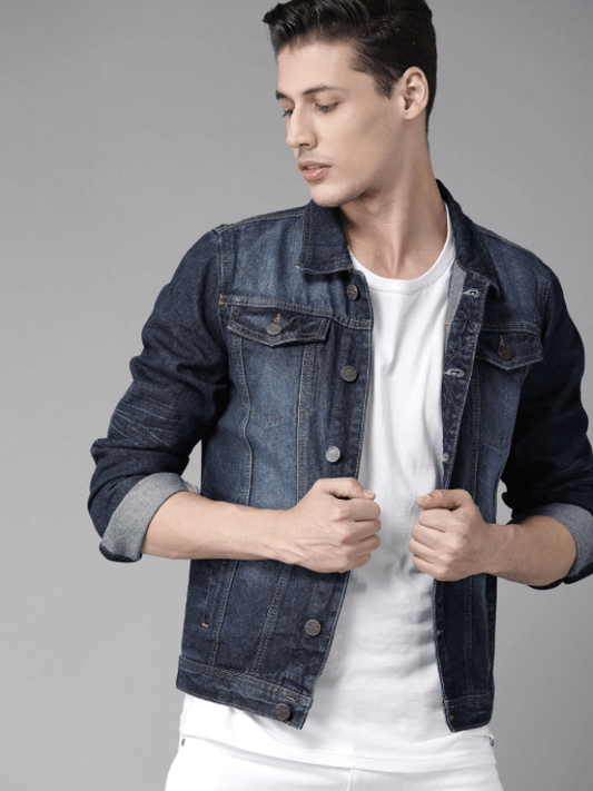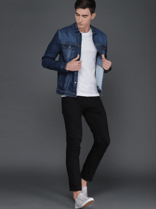 Mens Denim Jacket Light Blue Stripe Sleeves