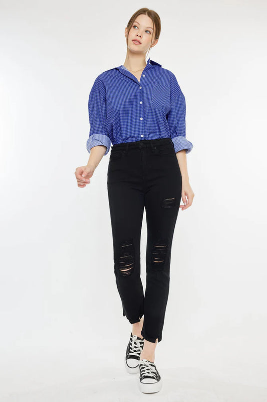 Damaged Ultra High Rise Slim Black Straight Leg Jeans
