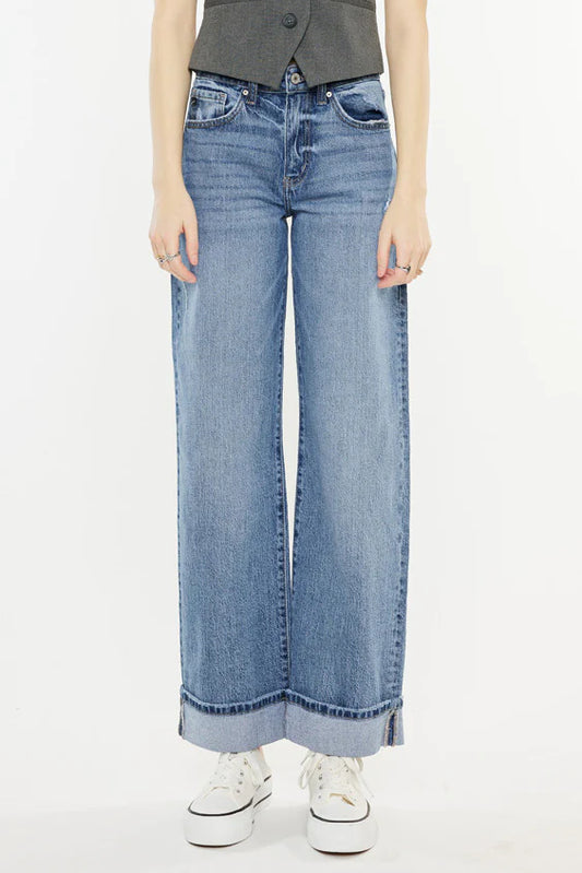 Kolbie High Rise Cuffed Wide Leg Jeans