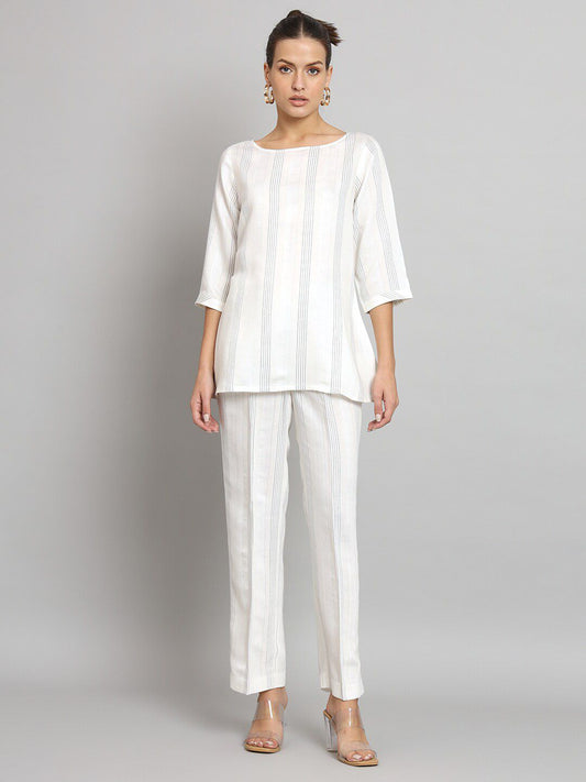 Off - White Cotton Linen Top With Trouser