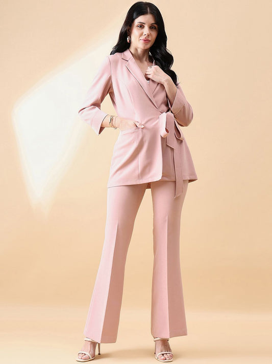 Tie Stretch Pant Suit - Pink