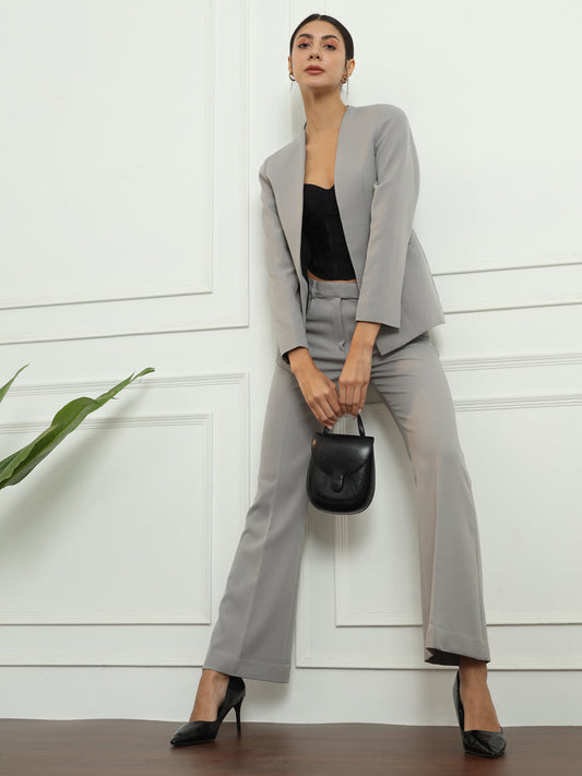 Lapel less Stretch Pant Suit- Grey