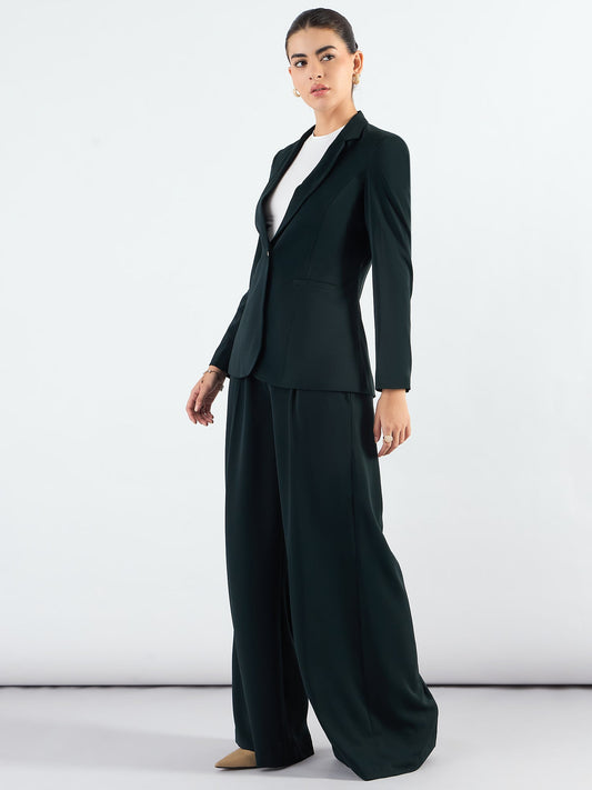 Notch Collar Stretch Pant Suit- Teal Green