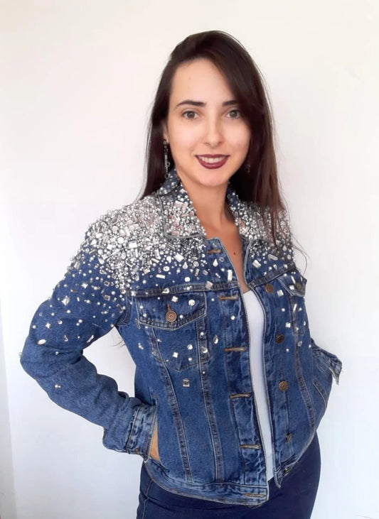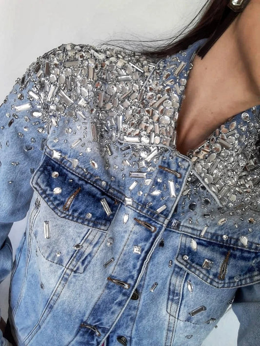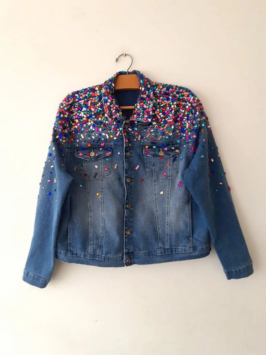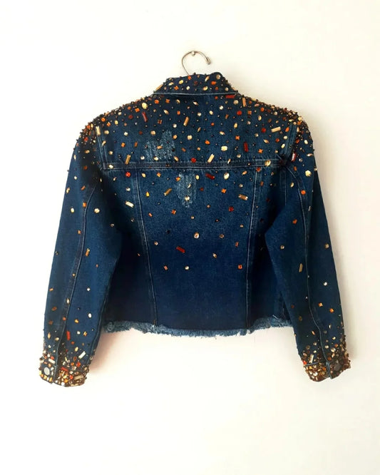 Colorful Crystal Stones Constellation Women Denim Jacket