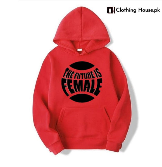 Red The Future is Female Fleece Full Sleeves Pull Over Hoodie For Women