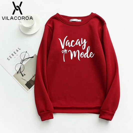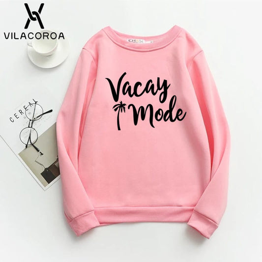 Vacation Mode Printed Fleece Full Sleeves Pull Over Sweatshirt For Women
