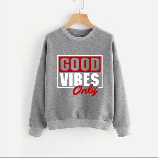 Good Vibes Fleece Full Sleeves Pull Over Sweatshirt For Women
