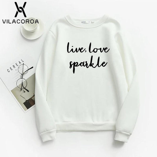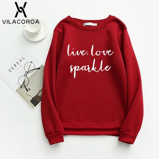 Live Love Sparkle Printed Fleece Full Sleeves Pull Over Sweatshirt For Women