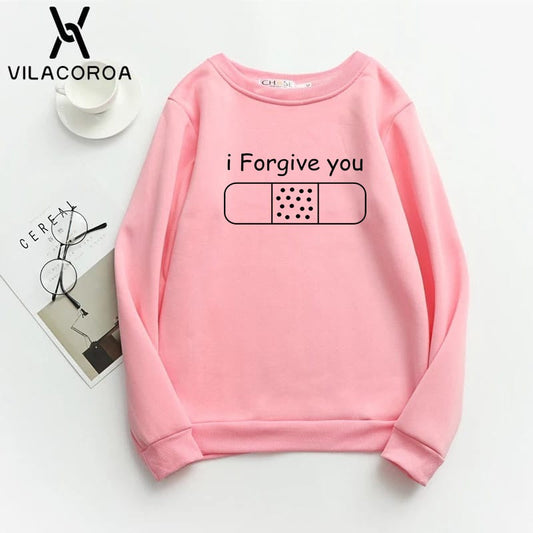 I Forgive You Printed Fleece Full Sleeves Pull Over Sweatshirt For Women