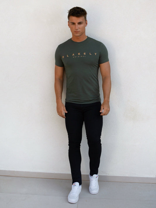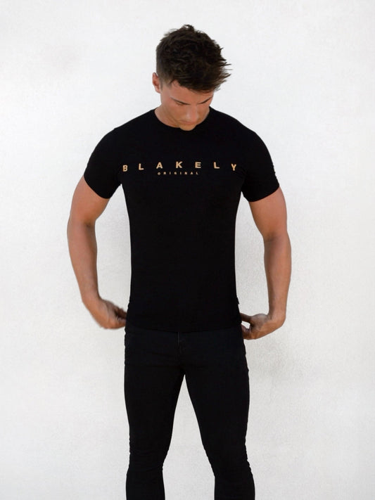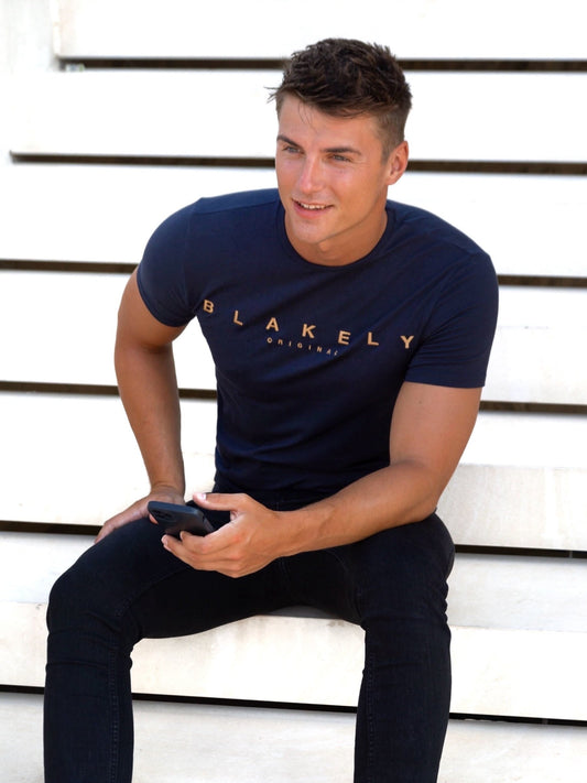 Blakly Gold Printed Navy Blue Mens Cotton T-Shirt