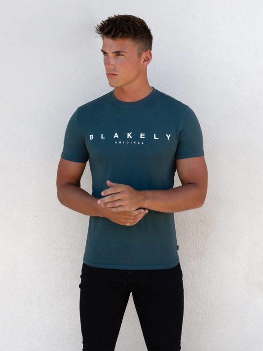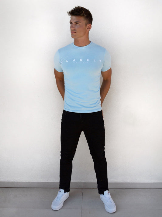 Blakly Printed Sky Blue Mens Cotton T-Shirt
