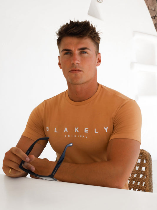 Blakly Gold Printed White Mens Cotton T-Shirt