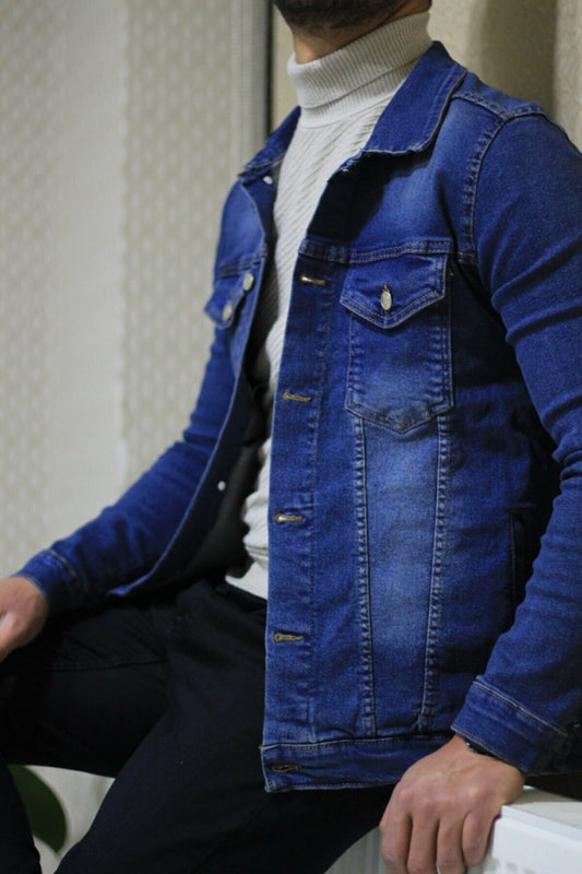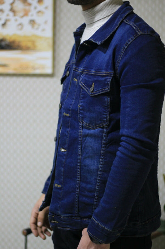 Dark Blue Mens Denim Jacket Stretchable Fine Lycra