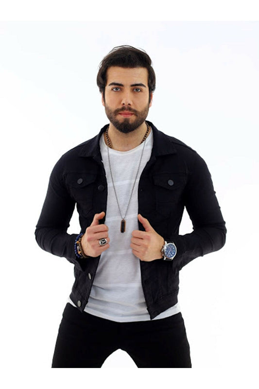 Ace Mens Black Denim Jacket Stretchable Fine Lycra