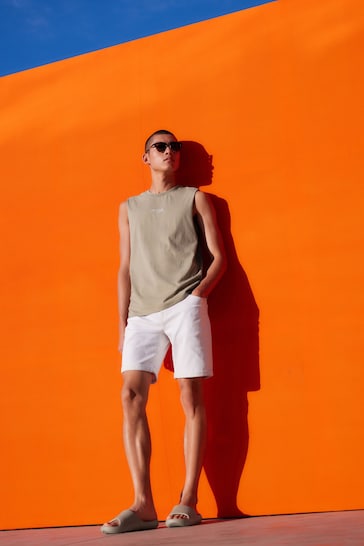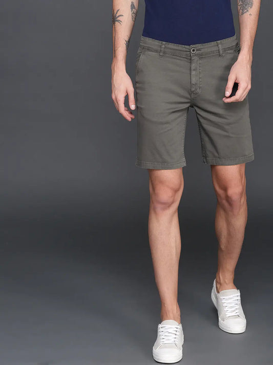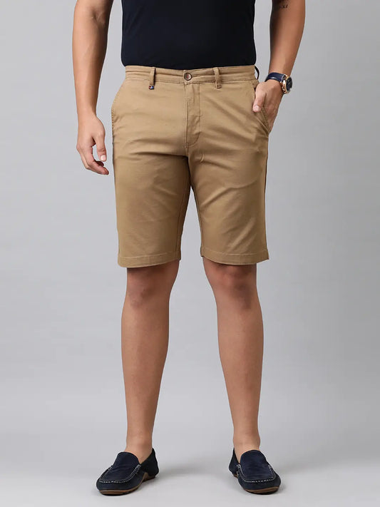 Men Khaki-Coloured Solid Slim Fit Regular Shorts