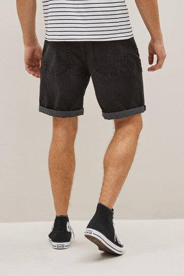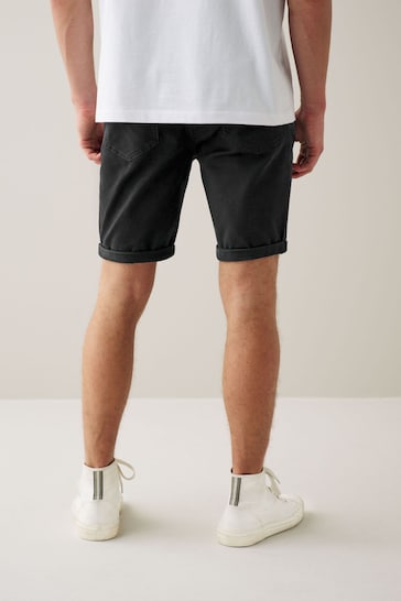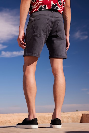 Men Charcoal Grey Solid Slim Fit Denim Shorts