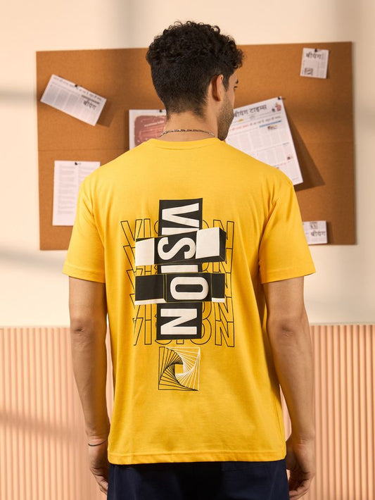 Motivational Yellow Printed Oversize T-Shirt for Men's
