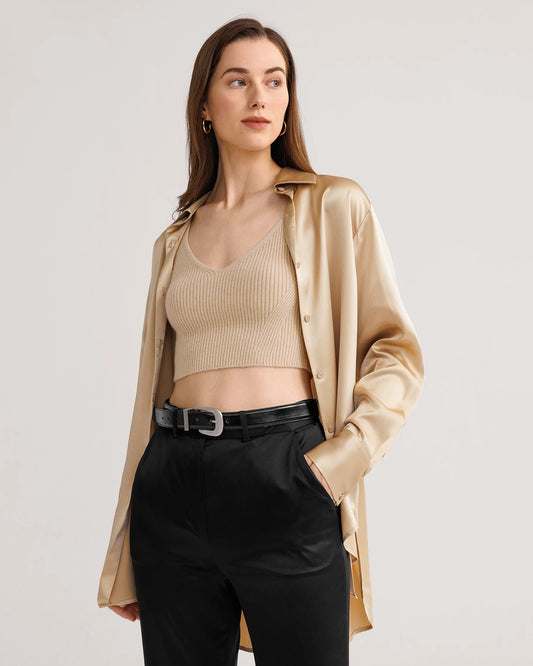 Light Camel Silk Shirt For Women