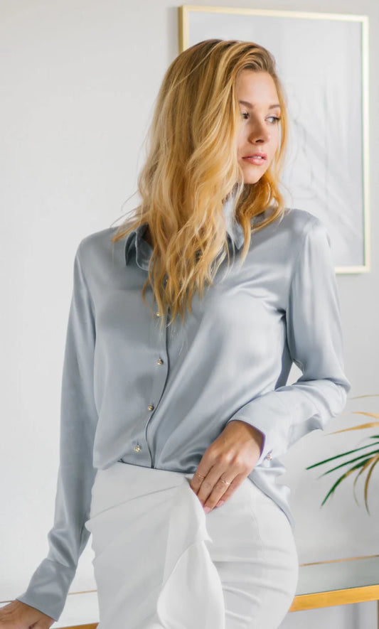 Platinum Grey Silk Shirt For Womens