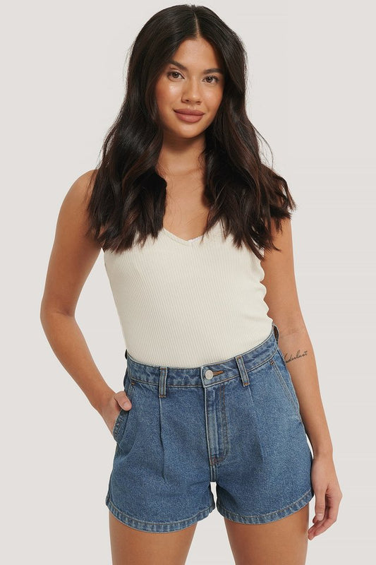 Organic Cotton Pleat Detail Shorts Blue For Womens