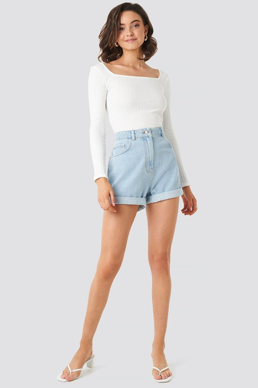Skinny High Waist Bermuda Shorts Blue For Womens