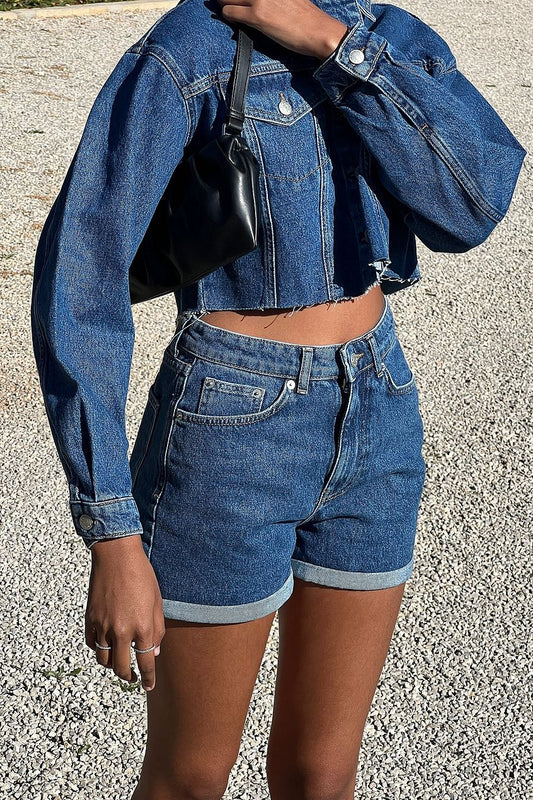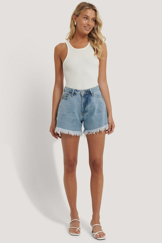 Raw Hem Denim Shorts DS1 Blue For Womens