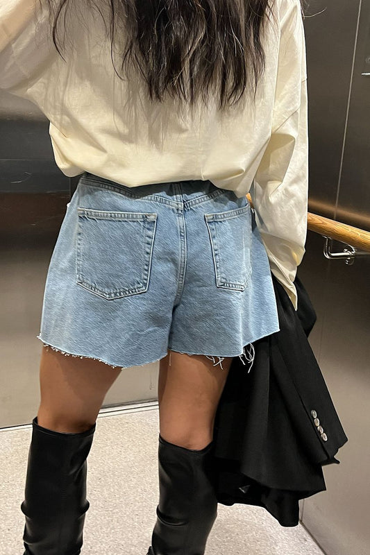 Raw Hem Vintage Look Denim Shorts LightBlue